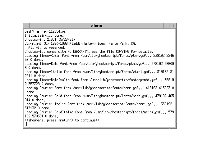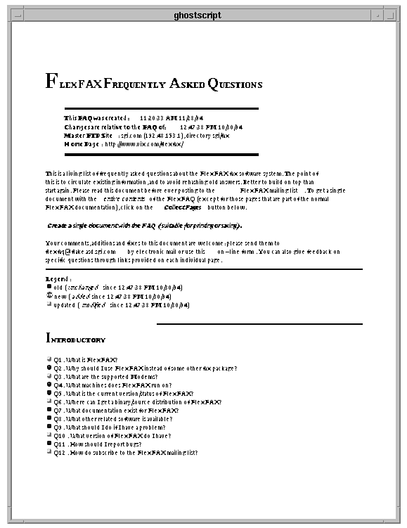 See Figure 25.1 for the input to the interpreter. (Your version number may be different than that shown in the figure.) The output is shown in a separate window as shown in Figure 25.2 (which shows the FlexFAX FAQ). The file in this example is the FAQ
