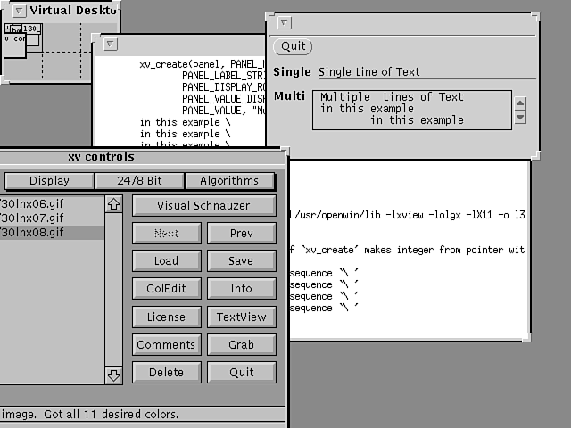 values for the application from the command line. You can use xv_init() only once in an application; the libraries ignore all other calls. Normally you'd override the DISPLAY variable if you wanted to display the window on a different machine.