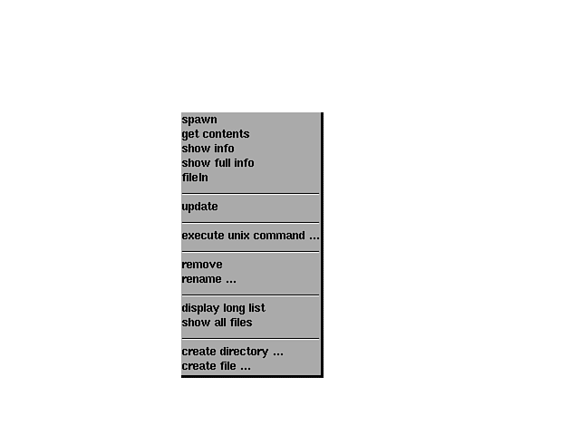 | display long list | Shows file information in the file list. This option toggles with display short list which is the default. |