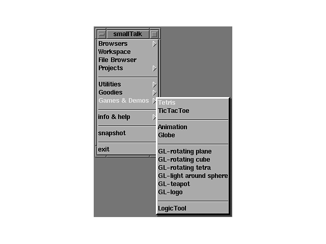 Contained in the pull-right menu of this option are games for your enjoyment and example applications that may be useful. The Games & Demos option menu is shown in Figure 34.15.